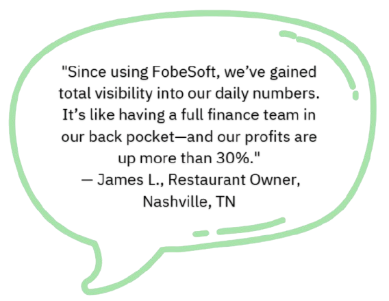 "Since using FobeSoft, we’ve gained total visibility into our daily numbers. It’s like having a full finance team in our back pocket—and our profits are up more than 30%." — James L., Restaurant Owner, Nashville, TN